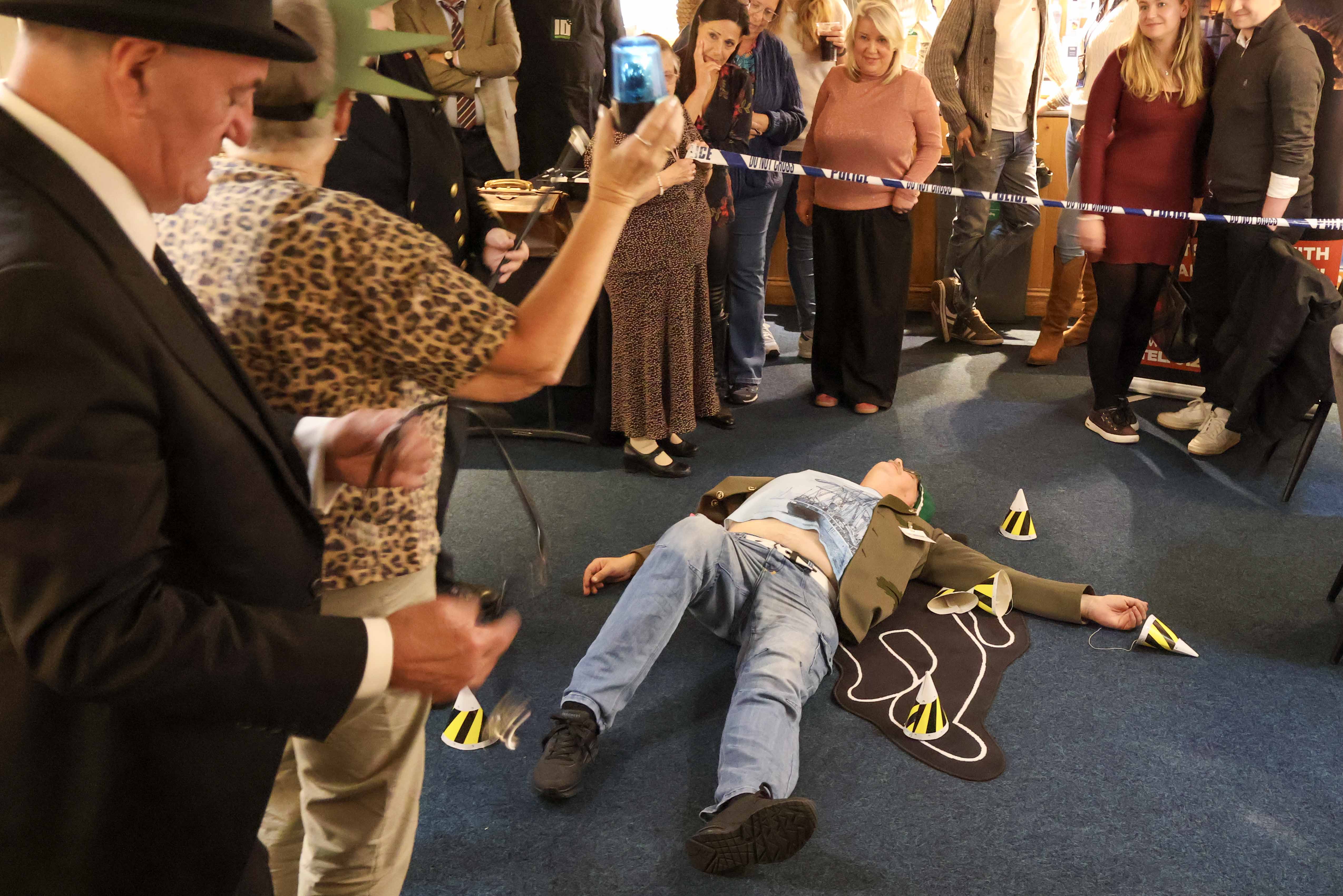 Over the years we have accumulated literally 1,000s of photographs from our murder mysteries. Below is a small selection illustrating the sheer range of locations, guests, audience sizes etc. but all with one thing in common … people having fun!